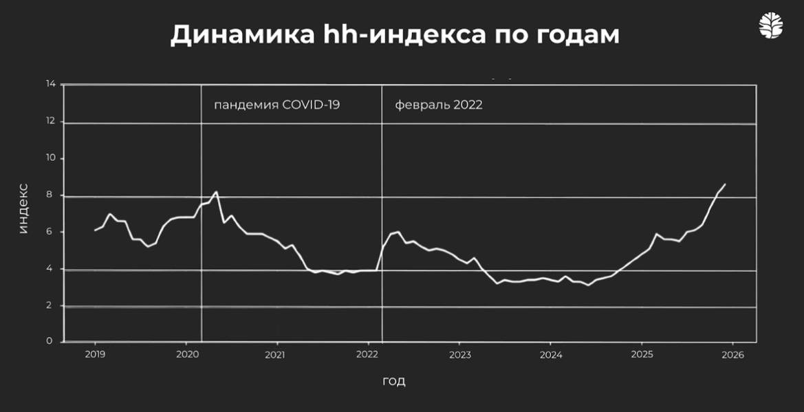 - 8,6 — значение hh-индекса в декабре 2025 года.