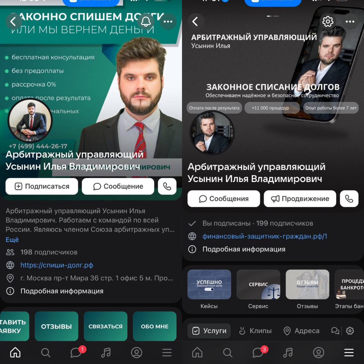 Создано два посадочных сайта с использование разных подходов для привлечения лидов Реклама в ВКонтакте: Мы собрали аудиторию до 50 тысяч человек для тестирования. Реклама была запущена на пересечении ключевых интересов и ключевых слов, что позволило привлечь целевую аудиторию, отдельно запускались LOOK a LIKE аудитории собранные похожие поведением пользователи на тех, кто уже является клиентом компании. Креативы содержали понятные и привлекающие внимание предложения, например, списание долгов через МФЦ. Яндекс.Директ: Запуск рекламы в поисковике позволил работать с аудиторией с уже сформированной потребностью. РСЯ и реклама на ПОИСКЕ охватывали дополнительные аудитории в интернете. Для повышения эффективности каждая рекламная кампания была оптимизирована под ключевые слова и интересы, а UTM-метки обеспечивали качественную аналитику. На сайте была установлена максимальная защита с помощью капчи, введена квалификация в лид-форме по городу(чтобы исключить проблему с трафиком из регионов, где мы не присутствуем), сумме долга (минимальную мы установили 500 тысяч), спросили готовность прийти на встречу (чтобы дополнительно подогреть лид и сделать его максимально качественным). В кампаниях установили корректировки: отключили автотаргет, большая часть кампаний работает на поиск, установлены ограничения показов: любой пол до 18 лет, любой пол с 18 до 24 лет, любой пол старше 55 лет, десктопы. Так мы оставили только финансово-активную аудиторию, самую горячую которой нужно сейчас, преимущественно с поиска и снизили до минимума количество форда от Яндекса. Шлаковых заявок практически не стало. Стоимость Лида выдержали такую же, какая была и без этих настроек, средняя по рынку. 4. Организовали работу с доверием клиентов через социальные сети Мы разработали и реализовали комплексный подход к управлению социальными сетями клиента, направленный на развитие его личного бренда и укрепление репутации компании в медиа-пространстве. Что было сделано: До/После До/После После упаковки: Ведение социальных сетей: На постоянной основе мы: Важно: Все социальные сети ведутся исключительно на органическом трафике, без использования платной рекламы. И главная задача социальных сетей в нашей работе — это формирование социальных доказательств в надежности компании для клиента. Результаты Итог Каждая успешная история бизнеса — это результат совместной работы. Мы готовы выслушать ваши идеи, поделиться своими знаниями, обменяться опытом и найти новые решения для развития вашего бизнеса. Свяжитесь с нами, чтобы обсудить, как наши совместные усилия могут привести к ещё большему успеху.
