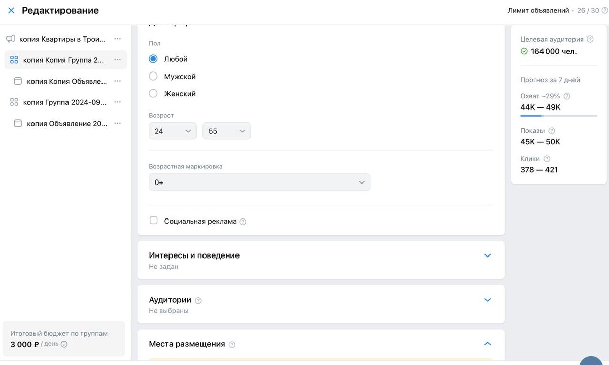 - Бюджет ограничен: на рекламу выделялось всего 50 000 рублей.