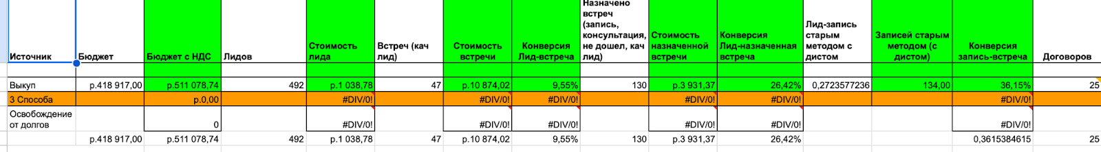 Теперь самое интересное — реальные цифры. таблица статистики за январь Результаты рекламной кампании: Рекламный бюджет Количество лидов Средняя стоимость лида Назначенные встречи Стоимость назначенной встречи Конверсия лид → встреча Проведённые консультации Конверсия консультация → договор Заключённые договоры Средняя стоимость договора Для ниши банкротства физических лиц это очень сильный показатель. Главная причина результата — системный подход. Мы работали не только над рекламой, но и над всей воронкой продаж: В результате мы получили стабильный поток целевых клиентов, а не просто заявок. Даже в условиях ужесточения рекламного рынка можно получать стабильный поток клиентов. Главное — правильно выстроить систему маркетинга и продаж. В этом проекте нам удалось: И всё это — всего за один месяц работы. Хотите построить результат в маркетинге? Свяжитесь с нами: Наш телеграмм @ruslankau либо оставьте заявку на сайте pro-igm.com.