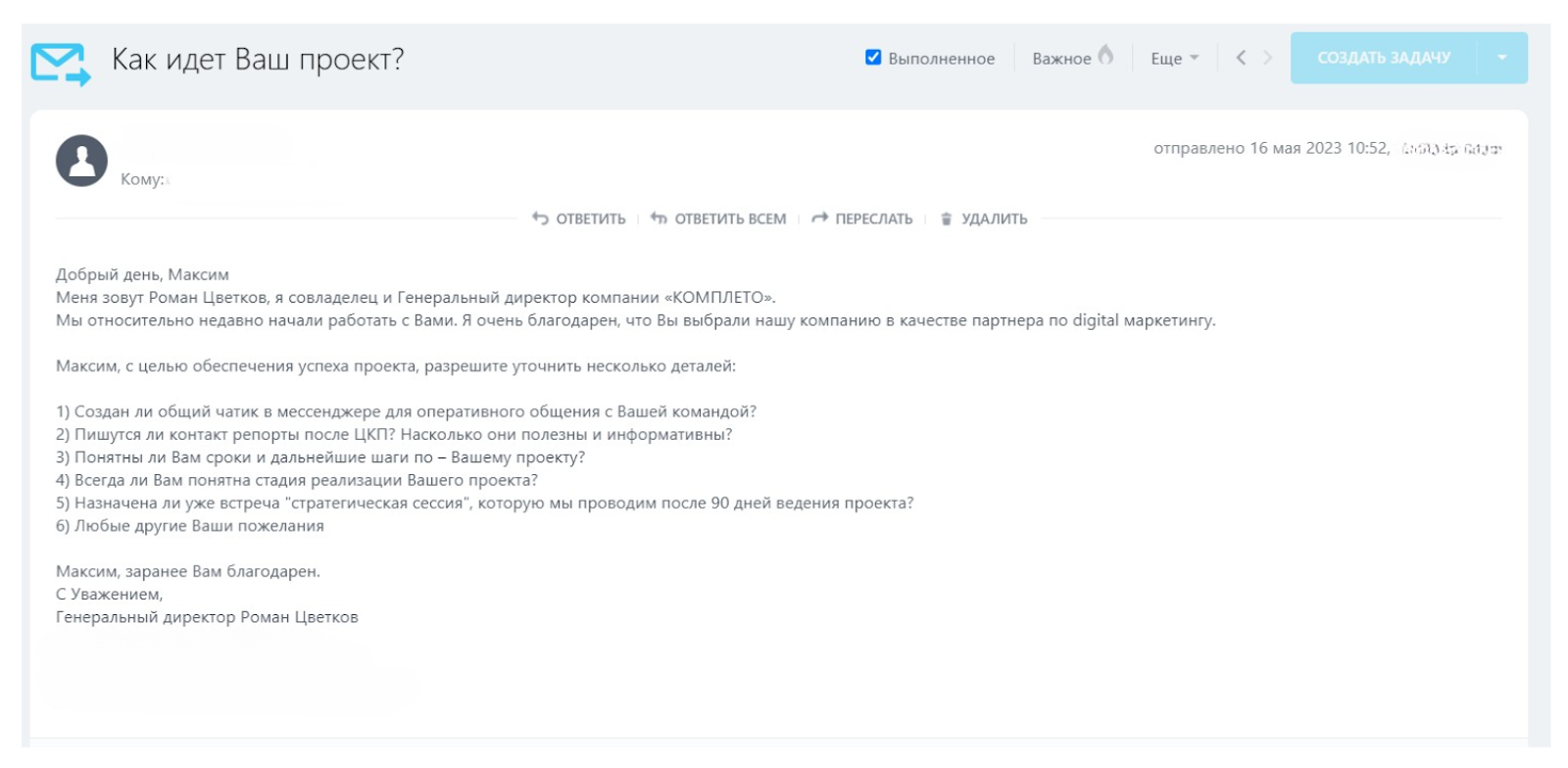 Email-маркетинг особенно эффективен для следующих типов бизнеса: Бизнес со сложным продуктом. Если ваш продукт имеет длинный цикл принятия решения о покупке, email-маркетинг становится незаменимым инструментом. Через серию писем вы можете постепенно знакомить клиента с преимуществами продукта, отвечать на возражения и выстраивать доверительные отношения. Когда клиенты пишут: «Вы обещали сделать коммерческое предложение и пропали на неделю!», — это недопустимо, даже если у вас сложный продукт. Чтобы такого не происходило, нужна автоматизация: клиенту нужно посылать письма-статусы. Например: «Мы получили запрос и начали готовить КП, а пока почитайте интересную статью», «КП готово на 50%, а пока готовится вторая половина, расскажем, как мы помогли другому клиенту в похожей ситуации». Клиент не будет нервничать и думать, что о нем забыли, и будет вам благодарен, когда его получит. Компании с профессиональной целевой аудиторией. Когда ваша аудитория — профессионалы в своей области, email-маркетинг позволяет делиться экспертным контентом, повышать лояльность и выстраивать долгосрочные отношения через полезные материалы. Да, это требует вовлечения специалистов и отвлечения их от основных обязанностей, но без этого можно даже не пытаться заниматься экспертным контентом с одними только копирайтерами. Бизнес с повторными продажами. Email-маркетинг помогает увеличивать количество повторных продаж и повышать LTV (пожизненную ценность клиента) через регулярные касания и персонализированные предложения. В компании мы запустили такую штуку: спустя 3 месяца после окончания проекта любой наш клиент получает письмо от генерального директора с вопросом о качестве нашей работы. Оно отсылается автоматически, но похоже, что гендир сам его написал. Вы не поверите, какой ошеломительный результат мы получили: конверсия составила почти 100 %. Да, ответы не всегда позитивные. Но это позволяет нам быстро реагировать на ситуацию, доставать все свои резервы и делать на проектах все 150 %. Компании с продуктами, которые редко ищут в интернете. Если у вас продукт с несформированным спросом, то есть его не ищут в интернете активно, email-маркетинг поможет донести его ценность до целевой аудитории через грамотно выстроенные лид-магниты и информационные рассылки. С приходом мессенджеров многие компании сместили фокус на ведение каналов в Telegram, перенесли общение в WhatsApp. Но мессенджеры — это не замена традиционным рассылкам, а дополнительный канал связи, и развивать стоит оба направления. За все время существования email-маркетинга появились очень удобные инструменты для взаимодействия с аудиторией по почте. Сделать то же самое в мессенджерах пока значительно сложнее. Если вы узнали свою компанию в одном из четырех профилей выше — записывайтесь на консультацию к нашей Маше Агеевой. В ходе беседы ответим на вопросы: Как и любой другой инструмент продвижения, рассылка писем имеет свои плюсы и минусы. Начнем с хорошего. ПЛЮСЫ Сравнительно небольшие бюджеты: email-маркетинг требует минимальных финансовых вложений по сравнению с другими рекламными каналами, что делает его доступным для бизнеса любого масштаба. Высокая конверсия: рассылка писем позволяет достигать высокой конверсии, превращая читателей в покупателей благодаря прямым призывам к действию и таргетированн