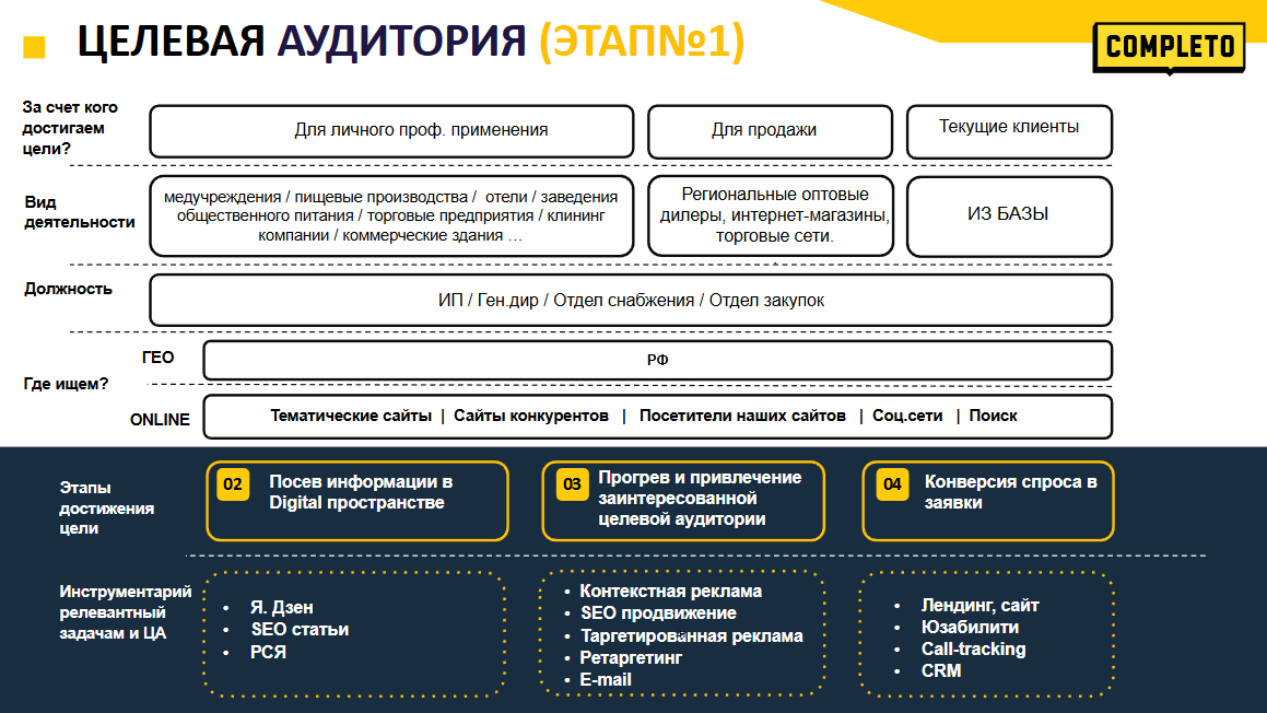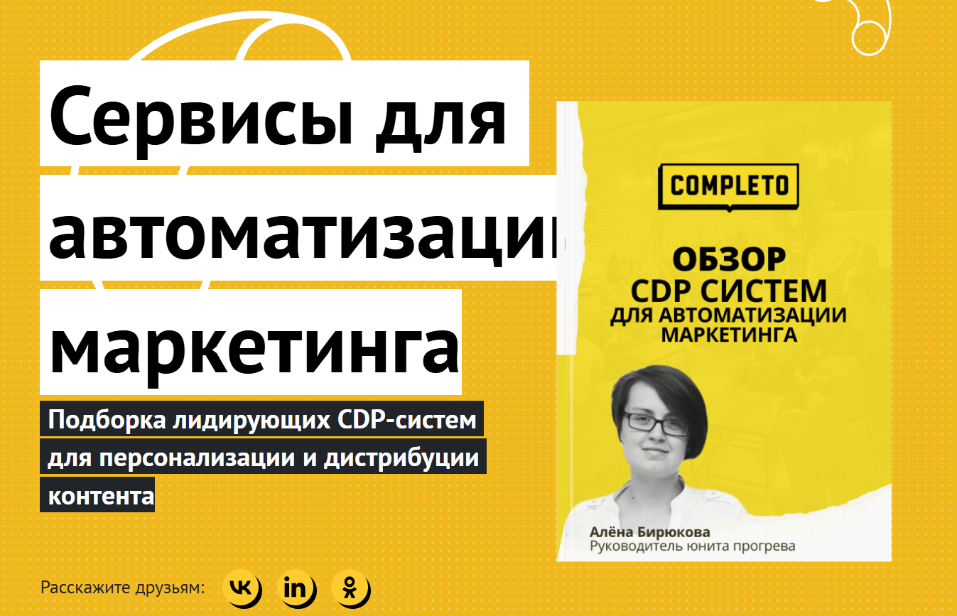 Меня зовут Алена Бирюкова, я руководитель направления «Прогрев» компании Completo. Более 6 лет занимаюсь разработкой и внедрением комплексных маркетинговых решений для среднего и крупного бизнеса. За это время мне довелось настроить продажи и реализовать десятки проектов по автоматизации для ведущих игроков рынка, включая крупные сети и интернет-магазины.