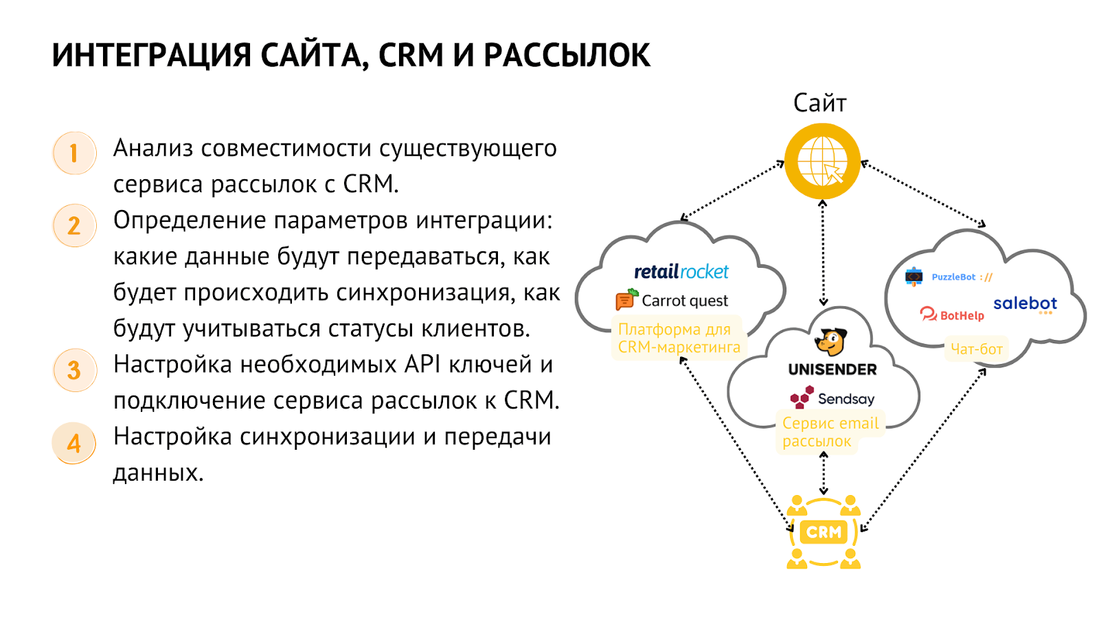 Если у бизнеса есть база контактов, — потенциальных или реальных покупателей, которые сами поделились своими адресами, — то можно начинать как минимум массовые рассылки. Если есть сайт, интернет-магазин, витрина, можно говорить про автоматизацию.