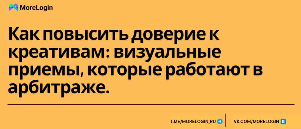 Пример: капли для слуха рядом с очками, часами, пилюлями — сразу понятно, что продукт «свой» и домашний. Не ограничивайтесь фото упаковки. Пользователю важно понять, как применять нутра-продукт, насколько это просто и безопасно. Что хорошо работает: Карусели: упаковка → открытие → применение.Руки в кадре.Видео-инструкции: сколько капель, как наносить мазь, как разбавить порошок. Пример: женщина наносит крем от варикоза, снято дома, без постановки — ясно, наглядно, вызывает доверие. Доказательство безопасности и легальности продукта — мощный триггер доверия. Покажите, что оффер — не подделка. Что стоит добавить в креатив: Голограмма, номер партии.Фото сертификатов.Скриншот инструкции, где виден состав и срок годности.Значки «одобрено экспертами», «натуральный состав». Пример: фото аннотации + упаковка средства с номером лицензии = понятный и честный месседж. Покажите ключевые ингредиенты прямо на креативе — это важно для осознанной аудитории, заботящейся о здоровье. Что включать: Крупное фото состава с упаковки.Инфографику с 2-3 активными веществами.Отметки: «гипоаллергенно», «без сахара», «органик» (если соответствует действительности). Пример: флакон в руке, на заднем плане — состав: экстракт боярышника, магний, чеснок. Просто и понятно. Сторителлинг от первого лица работает лучше любых постановок. Главное — искренность, домашняя обстановка и простая речь. Что важно в видео: Домашняя локация, не студия.Герой похож на ЦА (возраст, лексика).Конкретика: симптомы, динамика, визуализация результата.Показ продукта: упаковка, капли, таблетки. Пример: «У меня были боли в коленях, пробовала аптечную мазь — ноль эффекта. Случайно нашла эти капсулы. Через 10 дней реально легче. Вот упаковка». Ошибка многих арбитражников — делать разрозненные креативы и лендинги. Воронка должна быть логически и визуально связанной. Как сохранить целостность: Единый Tone-of-Voice.Цветовая палитра на всех этапах.Один герой, одна история.Сюжетное развитие от креатива до лендинга. Пример: на креативе — пожилой мужчина с высоким давлением. Прелендинг — рассказ сына с фото. Лендинг — продолжение, официальная информация, те же цвета и персонажи. В арбитраже сегодня выигрывает не тот, кто просто закупает трафик, а тот, кто умеет заставить аудиторию поверить в свой оффер. Эффективные креативы — это не просто красивая картинка, а грамотный визуальный язык, вызывающий доверие. Но чтобы эти креативы работали стабильно, не банились и масштабировались — нужны технические инструменты, например, MoreLogin. В арбитраже побеждает не самый яркий, а самый честный и правдоподобный визуал. Делайте креативы, которые выглядят как кадры из жизни. Используйте реальные локации, натуральный свет, не бойтесь несовершенств. Тестируйте подходы и следите за реакцией аудитории — именно она подскажет, что работает лучше всего. Регистрируйся и получи 50 профилей бесплатно!