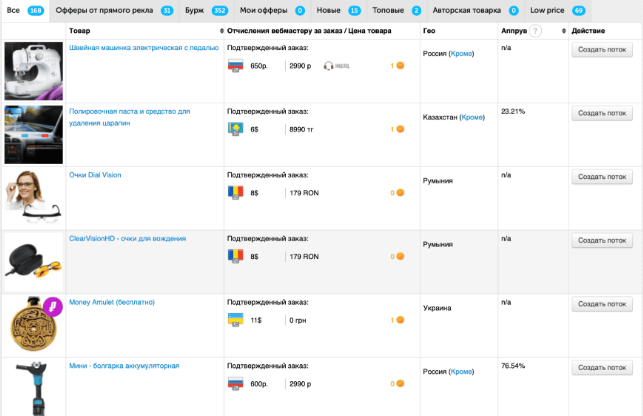 Одна из них — LeadBro. Это относительно молодая, но уже зарекомендовавшая себя CPA-сеть, делающая акцент на товарные офферы с высоким коэффициентом конверсии. У LeadBro есть эксклюзивные предложения для зарубежных рынков, что открывает дополнительные возможности при масштабировании. Выплаты здесь начинаются всего с $5, а деньги можно выводить на карты, через Capitalist или в криптовалюте USDT. Сеть работает с ГЕО по всему СНГ, в странах Европы и Азии.