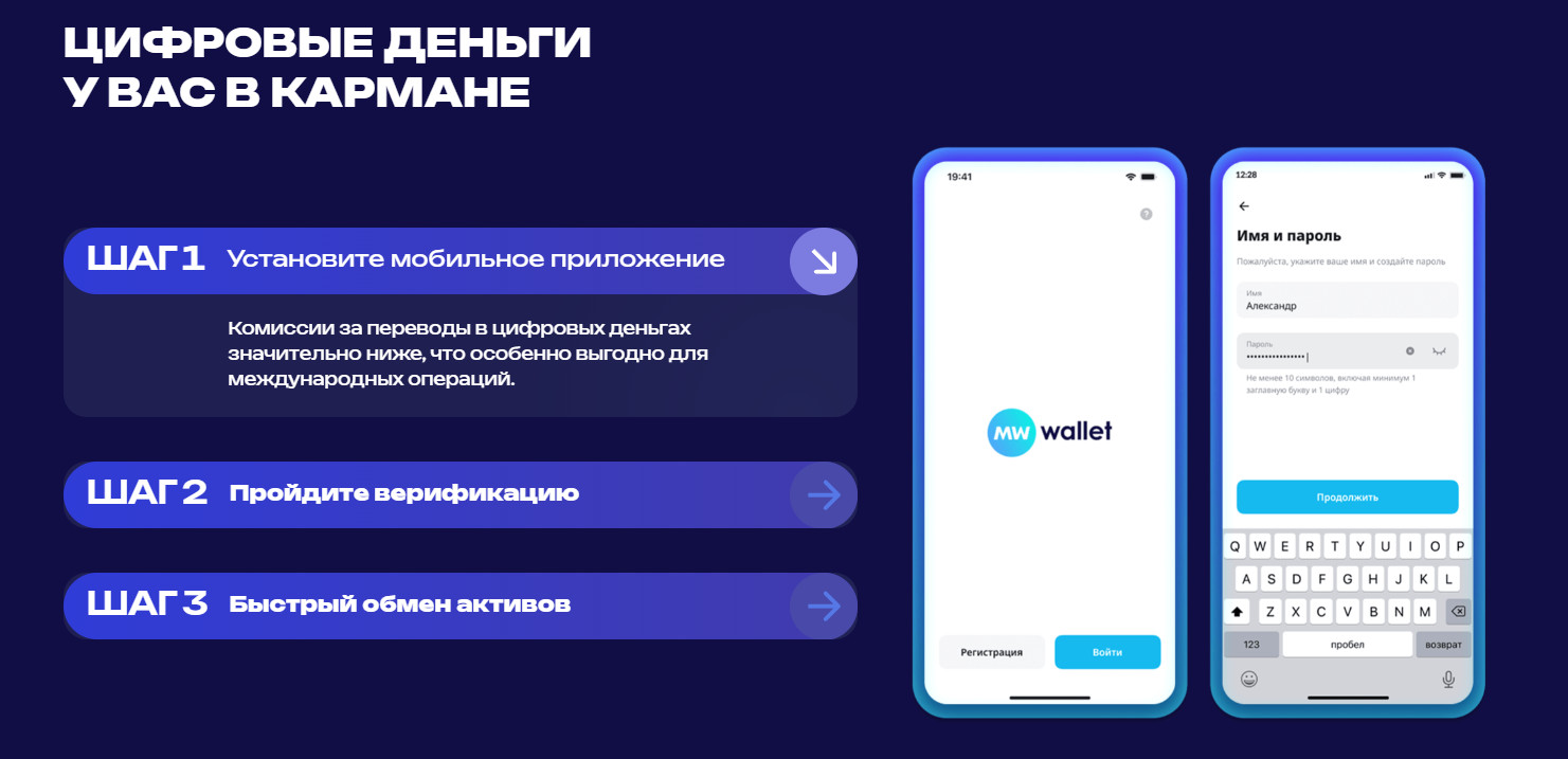 Cifra Markets — криптоброкер из Беларуси, работающий через площадку IMEX и входящий в структуру российского холдинга «Цифра». Ключевое преимущество сервиса в том, что вывод рублей оформляется как перевод собственных средств, что снижает вероятность блокировок и дополнительных проверок со стороны российских банков. Через брокера можно конвертировать USDT в рубли и торговать широким спектром криптовалют, что делает площадку полноценной альтернативой классическим биржам. По комиссиям условия достаточно прозрачные: ввод криптовалюты бесплатный, операции внутри криптовалютных пар — 0,25%, обмен крипты на фиат — 1,1%. За вывод рублей взимается фиксированная комиссия в 500 руб. Из минусов: заявки на вывод обрабатываются сутки, особенно это заметно в выходные. Кроме того, у Cifra Markets отсутствует собственное приложение — доступ к счету возможен только через сторонние брокерские платформы холдинга, например Freedom Broker. Whitebird — белорусская платформа с лицензией на внебиржевой криптообмен, официально зарегистрированная в Парке высоких технологий (ПВТ). Сервис работает в правовом поле, публикует всю необходимую юридическую документацию на сайте и дает возможность пользователям из России покупать и продавать криптовалюту легально, без p2p и «серых» схем. Для граждан РФ это один из наиболее простых и безопасных инструментов конвертации рублей в цифровые активы и обратно. Сильные стороны Whitebird — высокая скорость проведения операций (в среднем 5–10 минут), большой выбор валют (USDT, USDC, BTC, ETH, TRON, TON, WBP) и гибкость в работе с фиатом: можно обменивать на российские и белорусские рубли, доллары и евро. Пополнение средств происходит мгновенно, а вывод криптовалюты доступен по Tron и Ton, что помогает снизить комиссионные расходы. Дополнительно сервис выпускает криптокарты MasterCard от белорусских банков, которые можно использовать за пределами России. Отдельный плюс для россиян — возможность продажи USDT на карты МИР любых банков, что делает Whitebird удобнее конкурентов (например, А7А5) при работе с небольшими суммами. Из минусов: комиссия за пополнение может доходить до 2,17%, а курс отличается от официального (например, 83,8 руб. за USDT при курсе ЦБ 80 руб. — в случае покупки; при продаже условия выгоднее). На текущий момент пополнение возможно только через SberPay. Верификация пользователей иногда занимает больше времени, чем заявлено, и может растянуться до 15 часов. Оптимально подходит для небольших и средних операций, где приоритетом являются скорость и прозрачность, а не минимальная цена сделки. MW Wallet — узбекский сервис, который связывает российский МТС Банк с белорусской криптобиржей FREE2EX. В обеих юрисдикциях криптовалюта официально разрешена и регулируется, поэтому схема формально считается легальной. Приложение заявлено как информационный сервис, но фактически выполняет функцию посредника между картой МТС Банка и биржей. Главное преимущество — возможность легально покупать и продавать криптовалюту с российских карт без использования p2p-площадок. Верификация минимальная: достаточно указать номер телефона, привязанный к карте МТС Банка. Пополнение счета идет без отдельной комиссии, однако наценка включена в курс: например, USDT обходился примерно в 83,5 руб. при официальном курсе около 80. Есть и серьезные ограничения. Работает сервис только с картами МТС Банка. Комиссия з