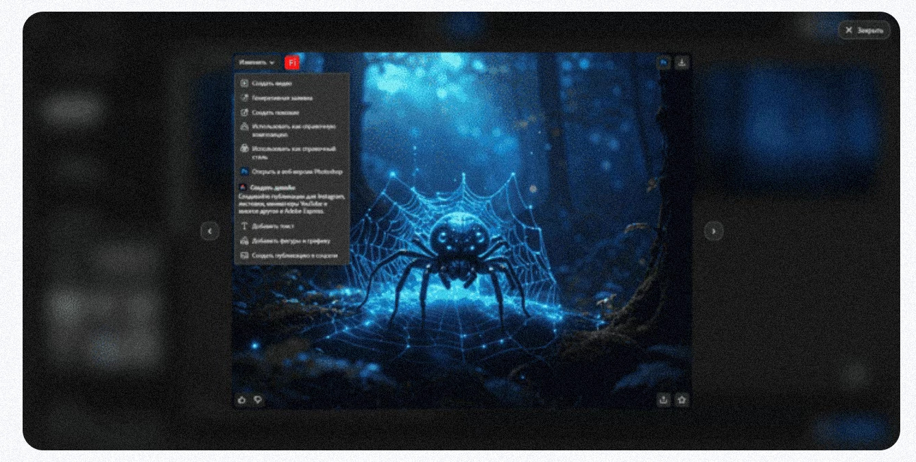 Одним из ключевых преимуществ Firefly является интеграция с другими продуктами Adobe. Некоторые функции нейросети можно использовать прямо в Photoshop или других приложениях экосистемы, что делает процесс работы с контентом более удобным и привычным.