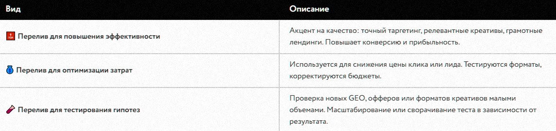 Перелив трафика нужен для одной цели — зарабатывать стабильно. Без него арбитраж превращается в бессистемный слив бюджета без прогнозируемого результата.