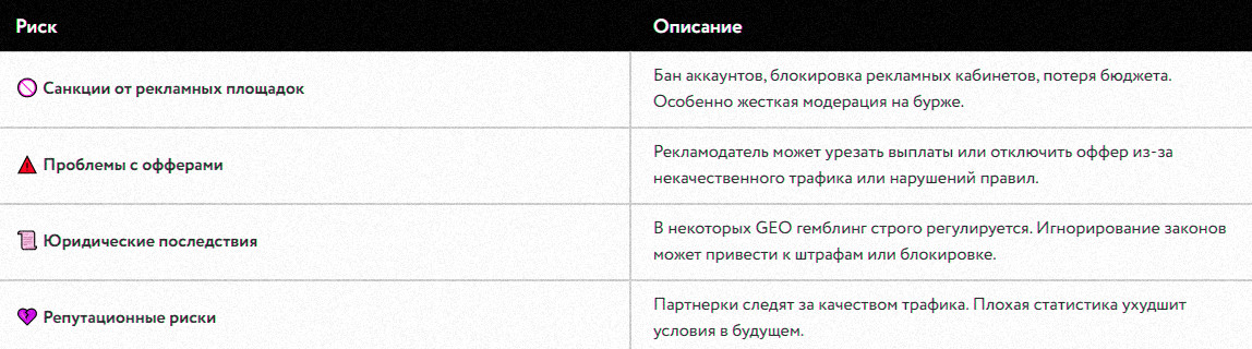 - эффективность оценивается не по количеству переходов, а по реальным конверсиям: регистрациям, покупкам, депозитам.