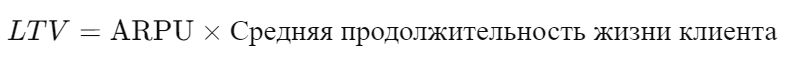 Средняя продолжительность жизни клиента — это срок, в течение которого клиент остаётся активным и приносит выручку (измеряется в месяцах или годах). Расширенная формула с учётом маржи: