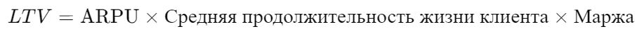 LTV помогает оценить общую прибыль, которую бизнес может получить от клиента за весь период взаимодействия. Базовая формула: Пояснение к формуле: