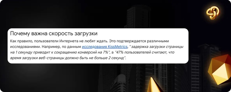 - Скорость загрузки — каждая секунда ожидания снижает конверсию на 7% (по данным Google).