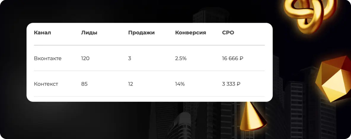 И здесь важно либо скорректировать цену на продукт, либо пересмотреть воронку продаж и поднять конверсию (разбор о том, как это сделать, будет в статье ниже).