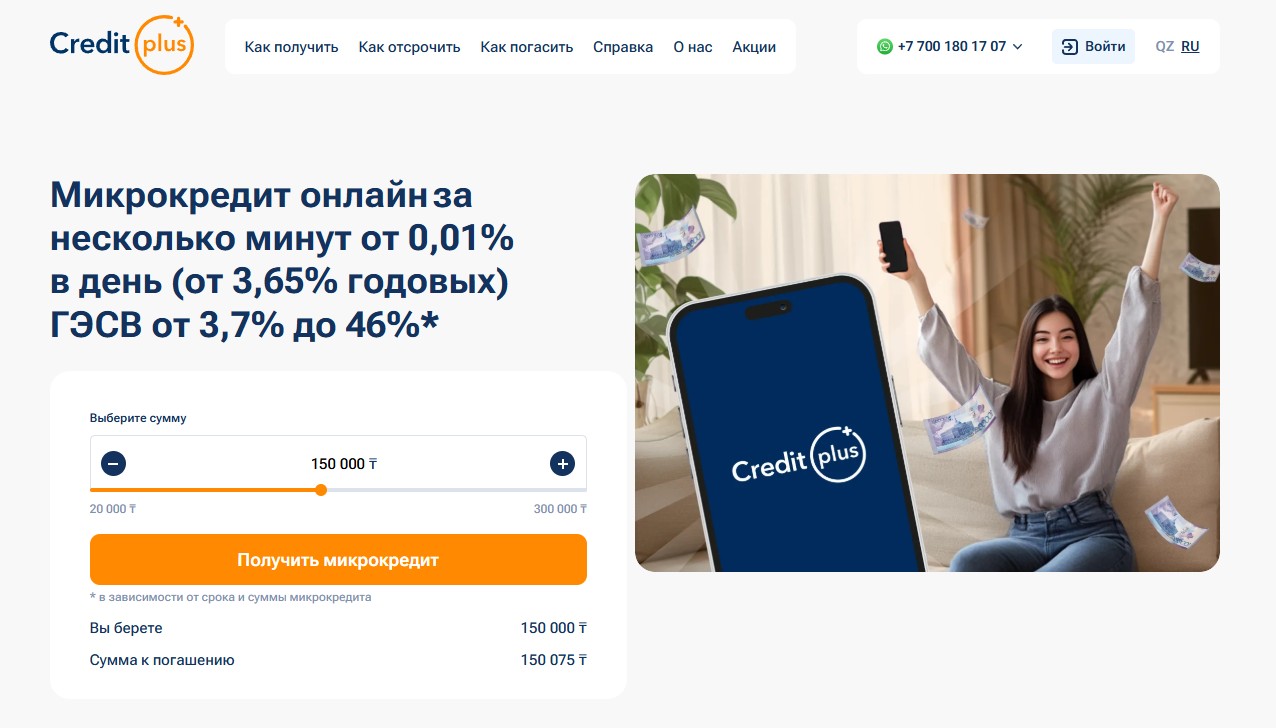 Creditplus — это онлайн-МФО, где можно быстро оформить займ. Однако кроме основной услуги, компания предлагает платный подбор займов, страхование и другие дополнительные сервисы. Они часто автоматически подключаются, если клиент не снимает галочки в форме заявки.