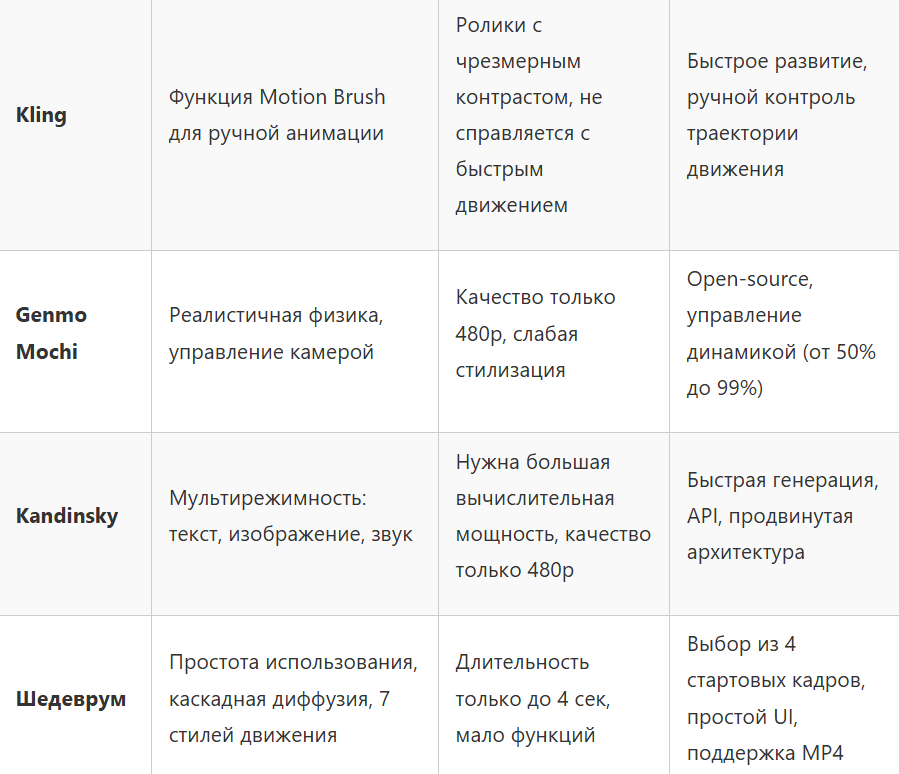 Сравнение нейросетей для генерации видео