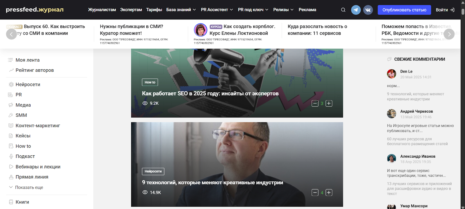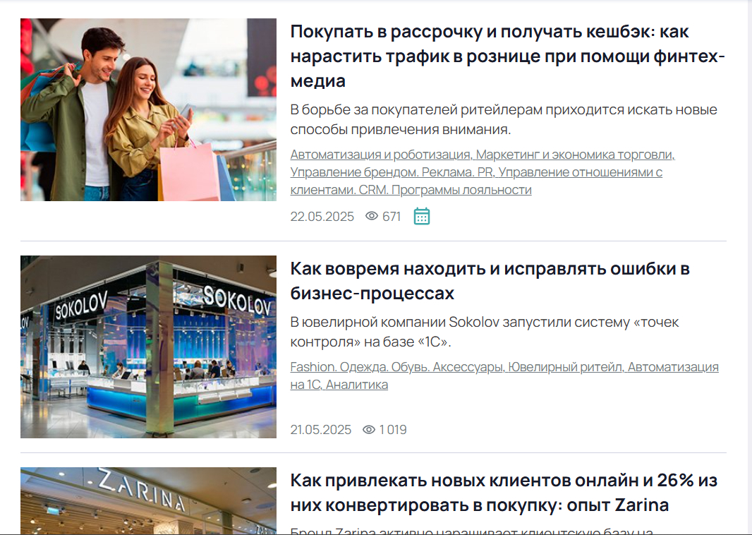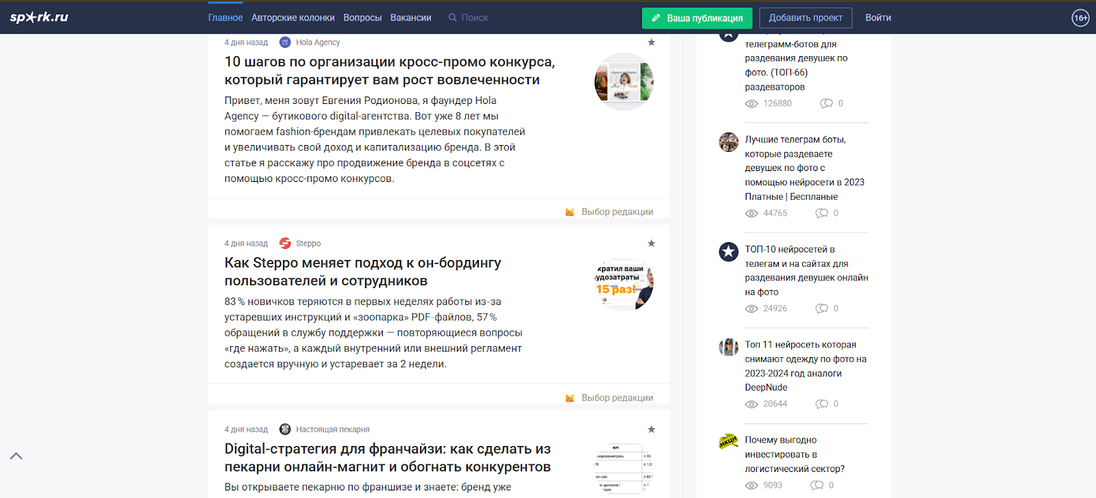 RB.ru, или «Русбейс» — это деловое онлайн-медиа для предпринимателей, топ-менеджеров и всех, кто развивает карьеру в технологиях и бизнесе. В отличие от VC.ru, контент здесь проходит редакционную проверку, но это тоже сайт для бесплатного размещения статей. Формат публикации — экспертная колонка. Предварительно можно обсудить идею с редакцией по e-mail. Тексты оценивают по качеству, уникальности и пользе для целевой аудитории. Писать должен человек, погруженный в тему — то есть владелец бизнеса, а не копирайтер, который просто изучил рынок. Редакция не примет колонку, если в ней откровенно продвигается продукт. Ссылок на коммерческие страницы быть не должно. SPARK визуально и по темам напоминает VC. Но это более камерная площадка с меньшей конкуренцией и скромной аудиторией. Это увеличивает шанс быть замеченным на сайте, где можно опубликовать статью бесплатно. Текст автор выкладывает сам. Алгоритмы работают так же, как и на других платформах, где контент делают сами пользователи: если статья получает отклик от читателей — охваты растут. Какие темы заходят: «Деловой мир» — онлайн-журнал о предпринимательстве, экономике и праве с профессиональной аудиторией. Здесь публикуют экспертные материалы, кейсы, интервью и аналитические статьи. Прежде чем отправлять текст, нужно зарегистрироваться. Редакция предпочитает уникальные, свежие темы, без банальности и навязчивого пиара. Оптимальный объем — около 8000 знаков. Ссылки допустимы, если они органично вставлены в текст, а не навязываются читателю. Платформа объединяет тех, кто работает в digital — агентства, фрилансеров и их клиентов. Здесь приветствуются статьи с практической пользой: инструкции, обзоры инструментов, личный опыт, истории заказчиков и подрядчиков. Публиковать статьи можно самостоятельно, модерация происходит постфактум. У лучших материалов есть шанс попасть в рассылку или телеграм-канал площадки. Редакция блога Myresume публикует материалы о поиске работы, резюме, собеседованиях, карьерном росте. Формат сотрудничества — статья с упоминанием компании и ссылками. Или взаимопиар, если ваш сайт собирает от 100 000 посетителей в месяц. Рекламные тексты, банальные советы или дубли с других площадок не пройдут, основной критерий текста — польза. Это площадка о малом и среднем бизнесе. Здесь публикуют предпринимательские истории, интервью, кейсы, обзоры технологий, идеи для старта. Чтобы разместить материал, нужно написать редакции и дождаться одобрения. Предпочтение отдают живому опыту: как было, что сделали, что получилось. Возможна публикация с досье и ссылкой на сайт автора. Retail — это B2B-портал о розничной торговле и сопутствующих услугах. Аудитория — ритейлеры, производители, дистрибьюторы. Тематика строго профессиональная. Публикация возможна только через редакцию и при условии, что текст полезен и правильно оформлен. Есть возможность подготовить спецпроект совместно с редакцией. Texterra — одна из старейших и авторитетных площадок о digital-маркетинге в рунете. Стать автором блога можно, но потребуются хорошая идея, качественный текст и соответствие всем пунктам масштабной редакционной политики. Контент предварительно одобряется редакторами. Ссылки в тексте запрещены. На площадке публикуют материалы с аналитикой, кейсами и гайдами. Иногда одобряют трендовые или эксперименталь