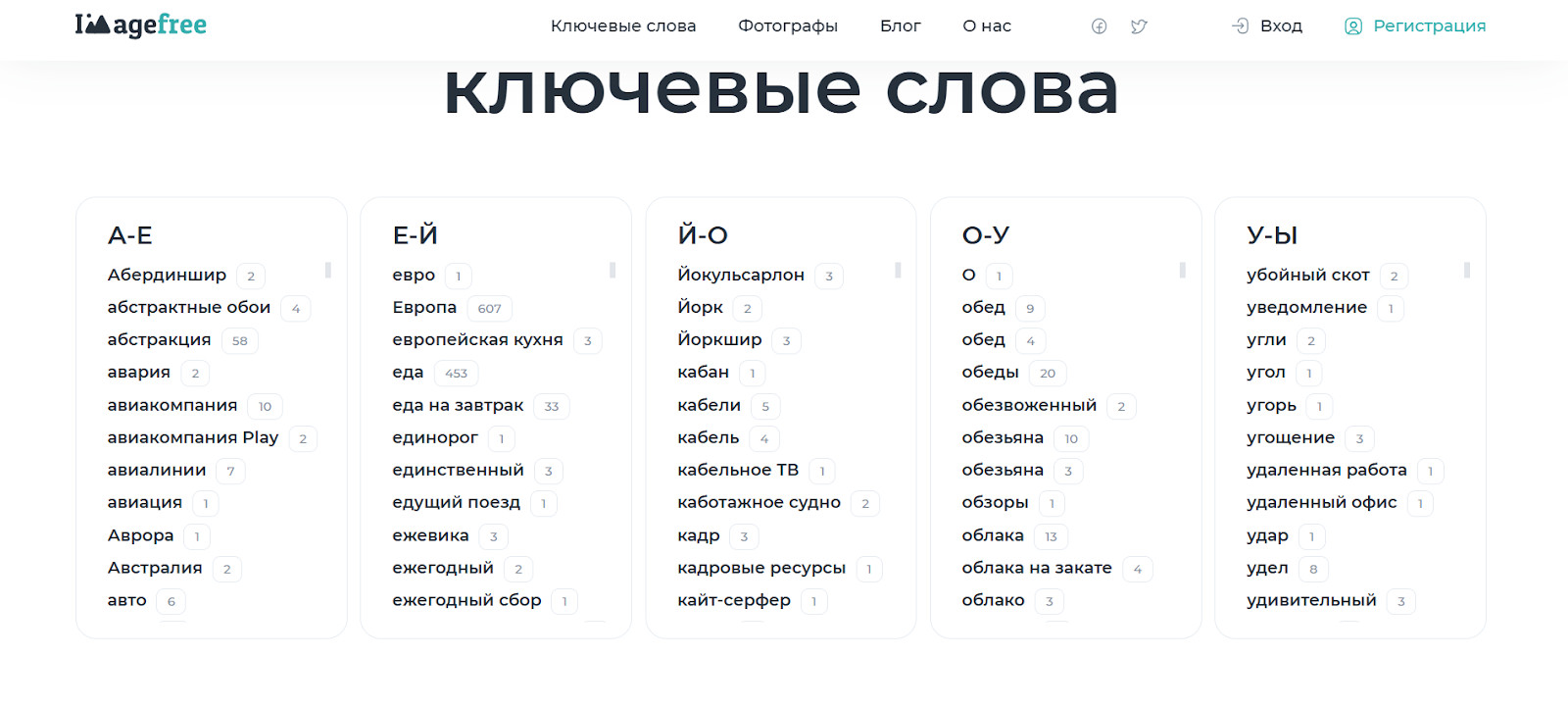 Сервис собирает фотографии, векторные иконки, видео, анимации и другие дизайн-ресурсы для вдохновения. Главное преимущество — минималистичный и интуитивный поиск на русском языке. Можно ввести любое слово или ассоциацию, после чего платформа выдаст тысячи релевантных результатов с разных фотостоков. Среди других плюсов Loon — высокое качество контента и быстрая загрузка без обязательной регистрации. Есть и минусы. Например, не все источники одинаково качественные — встречаются повторяющиеся или нерелевантные результаты. К тому же платформа не всегда отображает лицензионные условия оригинальных фотостоков — при коммерческом использовании нужно перепроверять источник. RuPixel — это бесплатный фотосток из России. В библиотеке около 16 000 фотографий, коллекция регулярно пополняется. Преимущества стока — полностью русский интерфейс и поддержка запросов на русском языке. Можно скачивать изображения без регистрации. Фотографии разделены на категории и цветовые палитры — это облегчает поиск. Каждое изображение сопровождается тегами и подборкой похожих фотографий. Платформа ориентируется на локальный рынок — все изображения подходят для русскоязычных проектов. Среди минусов — небольшая база и ограниченные фильтры поиска. Например, нельзя фильтровать по ориентации изображения или типу лицензии. Подписывайтесь на наш ВК и Телеграм, чтобы узнавать последние новости SEO и подсматривать новые фишки продвижения. Фишка ImageFree — любительская съемка. Многие кадры выглядят необработанными, но в этом и состоит их особенность. Для скачивания файлов нужно зарегистрироваться. Плюсы стока — удобный поиск и подборка ключевых слов, которые отсортированы по алфавиту. В списке есть все: от чизбургера до катастрофы. Из минусов — пользовательский опыт оставляет желать лучшего. При загрузке изображений сайт дергается, поэтому просмотр галереи не всегда бывает удобным. Kaboompics работает по единой лицензии: фото можно использовать бесплатно, без обязательной атрибуции. Но приветствуется благодарность фотографу, как и на других стоках. Здесь небольшой, но качественный выбор — более 17 000 изображений и почти 1500 тематических фотосессий. В поиске можно фильтровать изображения по цвету, ориентации, размеру, тегам, и искать снимки из одной фотосессии. Для каждого изображения указаны технические параметры съемки: ISO, объектив, диафрагма и оригинальный размер. Приятный бонус — автоматический подбор подходящей палитры к каждому снимку. Reshot — платформа с иконками и иллюстрациями. На стоке есть более 40 000 SVG-иконок и наборов иконок для сайтов, приложений, презентаций и маркетинговых материалов, а также свыше 1500 авторских иллюстраций в разных стилях и тематиках. Все материалы доступны в популярных форматах: SVG и PNG. Иконки и иллюстрации можно загружать, копировать, изменять и распространять. Их разрешено использовать в социальных сетях, онлайн-рекламе, образовательных, коммерческих и редакционных проектах. Лицензия действует бессрочно и распространяется на все скачанные файлы. FoodiesFeed акцентирует внимание на натуральных и реалистичных изображениях пищи. Основная идея сайта — изображения, которые не только передают красоту, но и выглядят аппетитно. Все фотографии на FoodiesFeed можно скачать бесплатно и использовать для личных и коммерческих проектов. На п