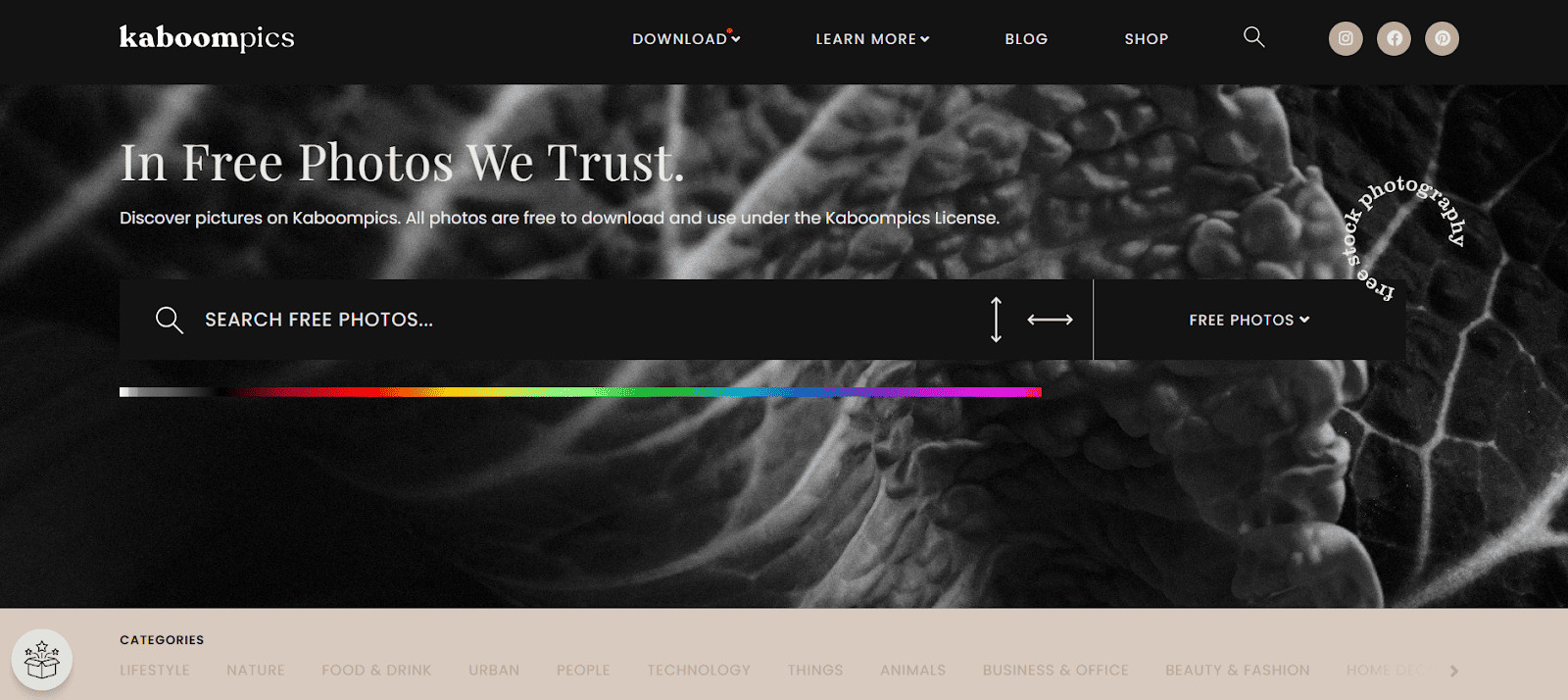 Loon — не классический фотосток, а скорее агрегатор. Он объединяет материалы с популярных бесплатных платформ: Pexels, Unsplash, Pixabay и Flickr. Так что с Loon можно получить доступ к заблокированным в России стокам.