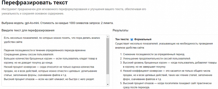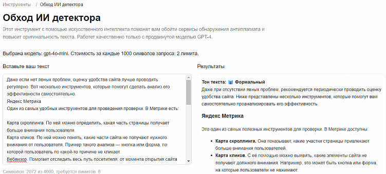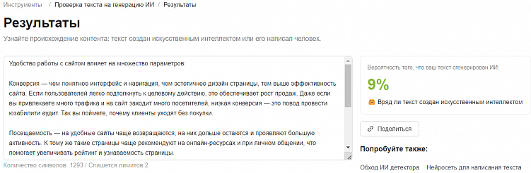 Рерайт — это достаточно долгая и точная работа, которую невозможно выполнить, не понимая исходный материал. Это не столько обход антиплагиата, сколько глубокая обработка текста. Итоговый контент по форме получается совершенно не похожим на материал до переписывания, но по содержанию остается тем же. Чтобы не проводить анализ каждого слова, сервисы по антиплагиату ищут цепочки из слов, которые наиболее часто упоминаются в уже опубликованных статьях. Такие цепочки называются шинглами. По ним сервисы определяют степень уникальности материала. В тексте шинглы всегда находятся в определённой последовательности. Ваша задача — самостоятельно разбить эту последовательность, разбавить цепочку новыми словами или заменить старые слова на синонимы. Помните при этом, что смысл фразы не должен потеряться. Обычно программы по антиплагиату считают за один шингл комбинацию из трех слов. Чтобы повышать оригинальность текста, нужно изменять каждое третье-четвертое слово в цепочке. Можно менять не только сами слова, но также перестраивать предложения. Например, у вас есть фраза «Пусть бегут неуклюже пешеходы по лужам». Чтобы разбить цепочку, автор может переписать ее таким образом: «Пусть бегут неуклюже и спотыкаясь пешеходы по мокрым лужам». Секрет в том, чтобы добавлять новые слова в шингл после каждого второго или третьего слова в цепочке. Так вы постепенно повышаете уникальность материала. Сервисы по антиплагиату проводят анализ материала, используя только русский язык и только на территории рунета. Поэтому еще один бесплатный способ обходить антиплагиат — использовать Google Переводчик. Работает это так: автор копирует готовую статью или ее часть на русском в переводчик, переводит на английский, копирует получившийся текст на английском и переводит его обратно на русский. Грамматические конструкции и правила английского языка отличаются от русского. Когда вы будете переводить текст на английский, вы заметите это различие. В итоге у вас получится текст на русском, но с новой структурой, отличающейся оригинальностью. Не забудьте провести проверку результата и при необходимости доработать текст. Google Переводчик не идеален. В интернете можно найти гораздо больше бесплатной информации на иностранных языках, чем на русском. Это касается и материалов, которые можно взять за основу для вашей статьи. Поищите информацию по теме, которая вас интересует, на любом иностранном языке. Когда вы соберете достаточно материала, переведите его через переводчик на любом сайте. Так у вас получится полностью уникальный контент, который обойдет антиплагиат. Искусственный интеллект может повышать уникальность текста. Например, инструмент «Перефразировать текст» сделает рерайт вашего материала автоматически. Разбейте заимствованную статью на фрагменты и по очереди прогоните их через нейросеть. Алгоритм будет увеличивать процент уникальности каждой части. Так же, как и в случае с переводчиками на сайтах, работу нейросети обязательно нужно проконтролировать самостоятельно. Но эта проверка в любом случае займет в разы меньше времени, чем рерайт вручную. А если вы хотите узнать, как был создан исходный материал, воспользуйтесь инструментом «Проверка текста на генерацию ИИ». Он покажет, кто написал статью: искусственный интеллект или человек. Прог