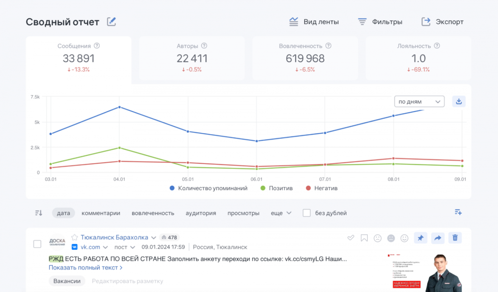 В работе с упоминаниями важно поддерживать два направления работы: с тематическими соцмедиа-площадками и крупными охватными онлайн-СМИ.