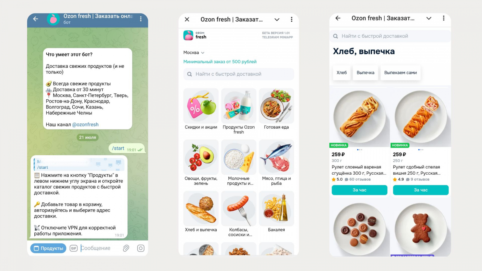 - Просмотр каталога, фильтрация товаров, добавление в корзину и оплата — все это внутри мессенджера.