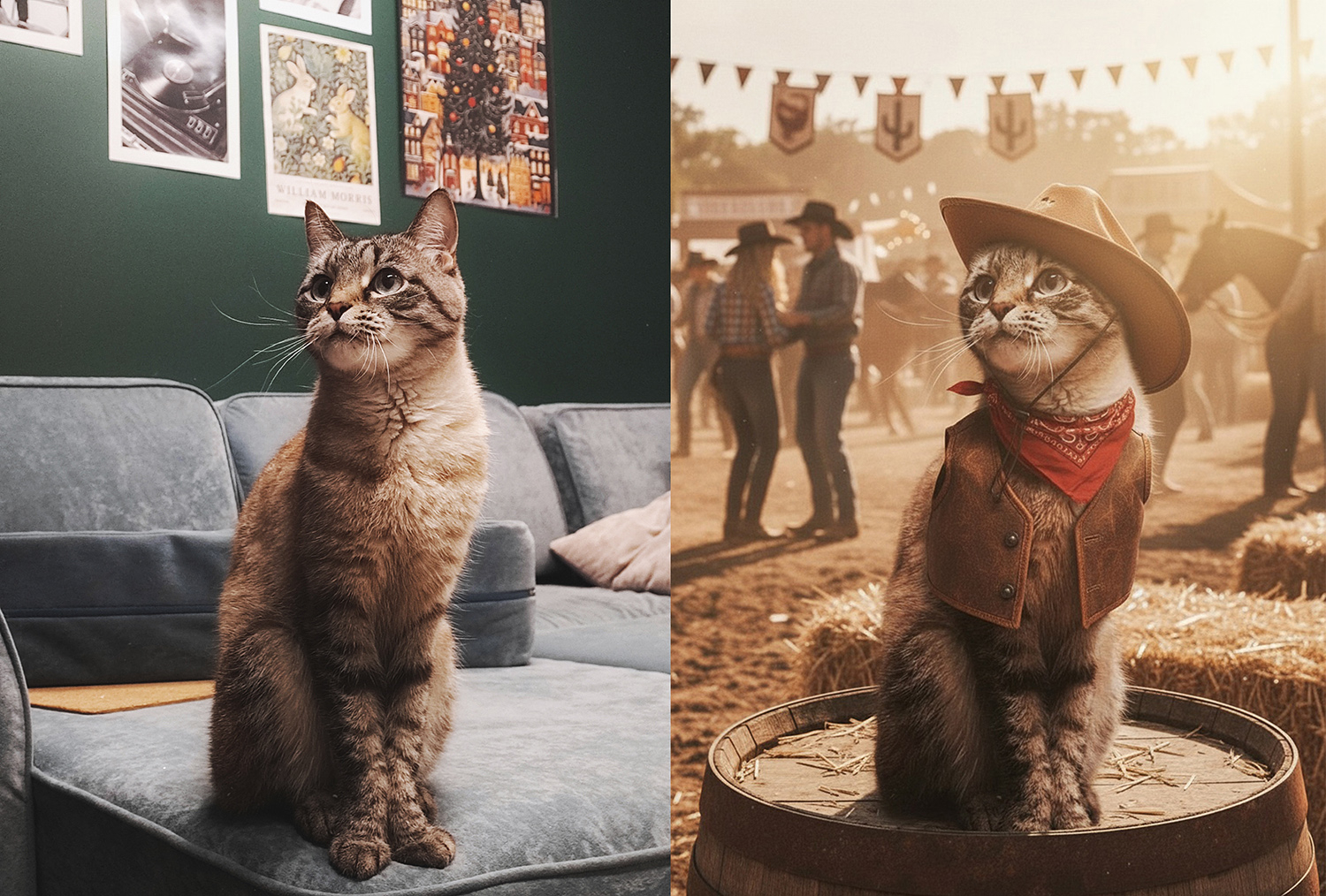 Инструмент соединяет несколько изображений в единую гармоничную композицию на основе текстового описания.