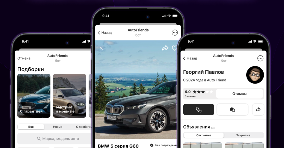 Одно из решений, реализованное на базе Telegram Mini App, — сервис по продаже автомобилей в Санкт-Петербурге. Цель проекта: упростить процесс покупки и продажи авто до нескольких кликов.