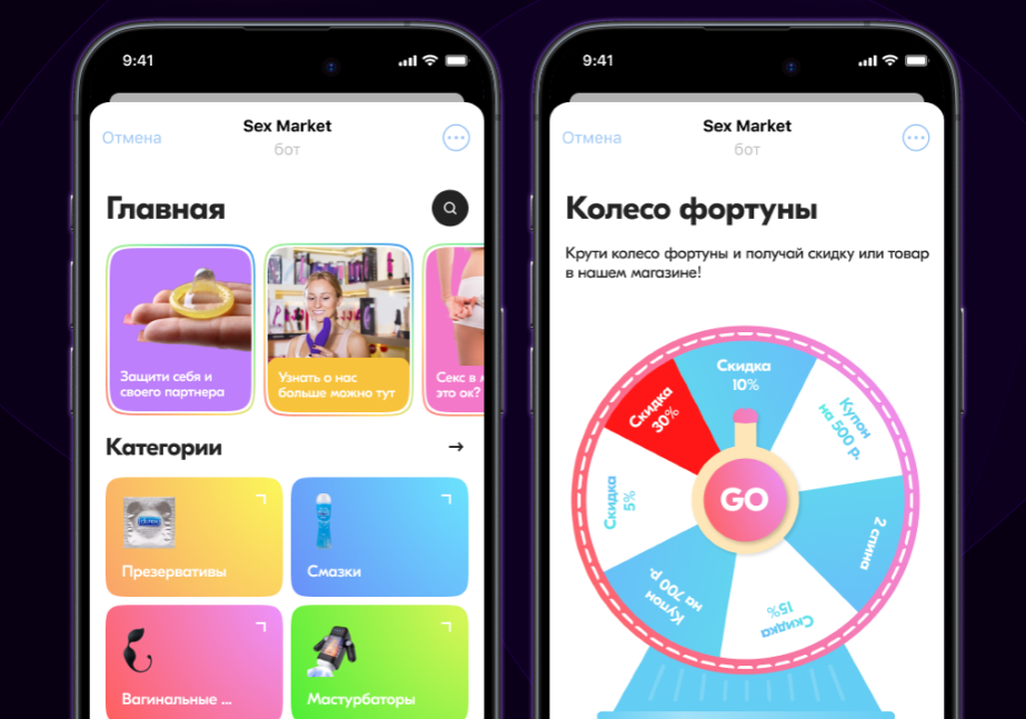 Одним из ярких примеров стала разработка Telegram Mini App для крупного интернет-магазина товаров для взрослых. Основной запрос клиента — сделать процесс покупки максимально простым и приватным, а также внедрить игровые механики, чтобы стимулировать повторные заказы и рост лояльности.