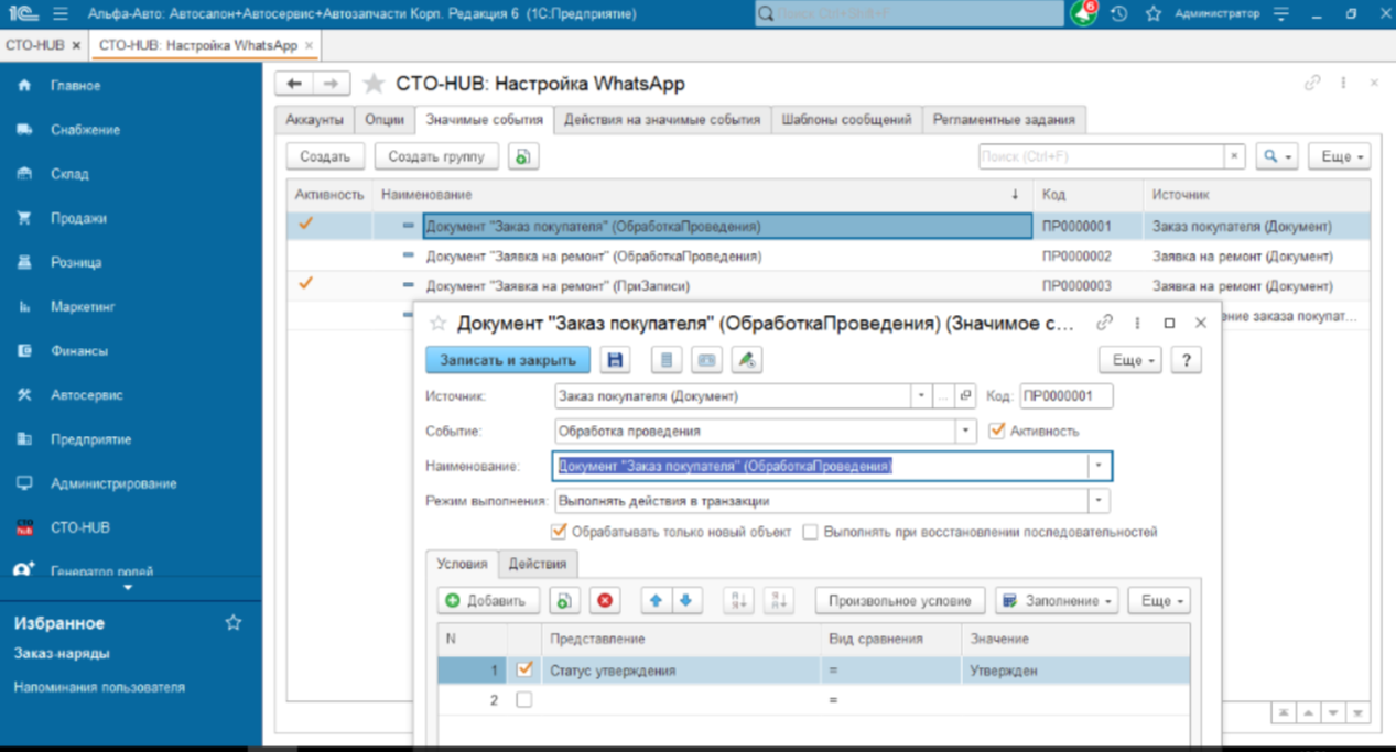 Что такое модуль WhatsApp в 1С Альфа-Авто?