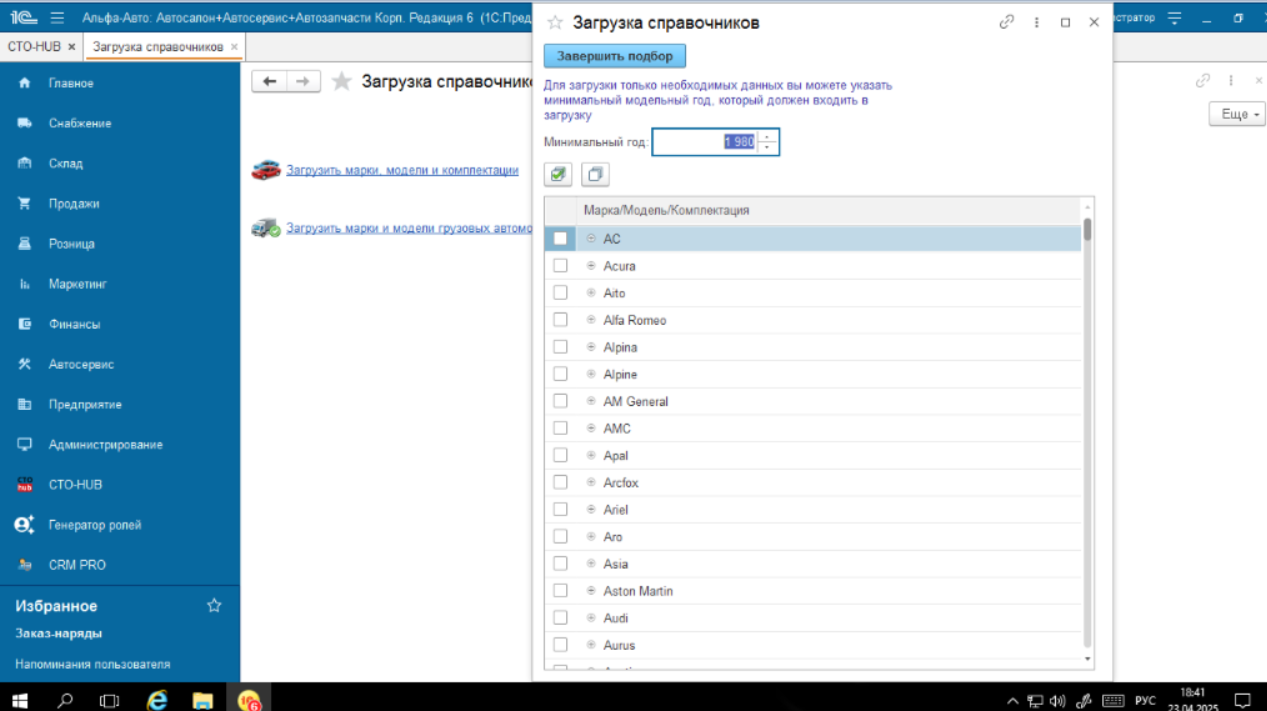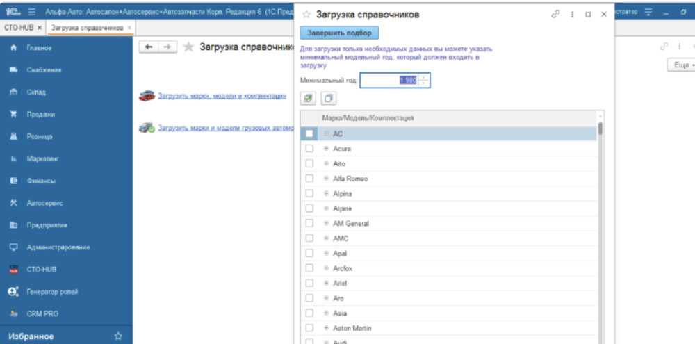 Представьте: вы можете выбрать, какие именно марки, модели и модификации автомобилей загрузить в справочник. Например, если ваш автосервис специализируется на европейских автомобилях, вы можете загрузить только их, исключив ненужные данные.