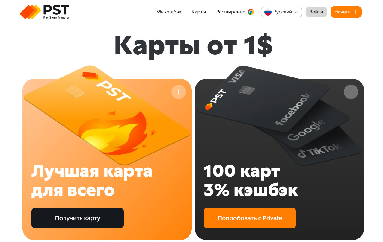 - 100 бесплатных карт можно выпускать в месяц: по программе PST Private, очень выгодно, если нужно тестировать связки и масштабироваться;