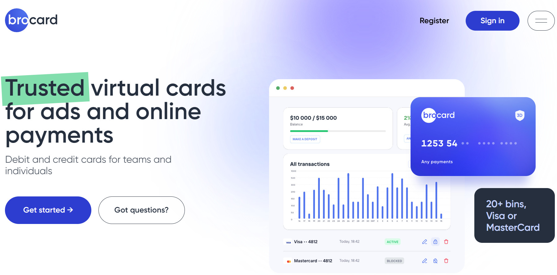 С картами Brocard.у меня почти не было проблем с привязкой. Facebook* и Google принимают их нормально. Но важно понимать: сервис внимательно следит за качеством трафика и уровнем отказов. Если деклайнов становится слишком много (больше 25%) аккаунт могут заблокировать без права восстановления. Так что если вы привыкли сливать тесты вширь и быстро, нужно быть аккуратнее.