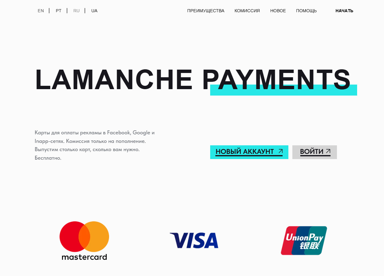 - Привязка к кабинетам без проблем: у платежки есть готовые карты под Facebook*, Google, TikTok и другие сетки, либо универсальные решения;