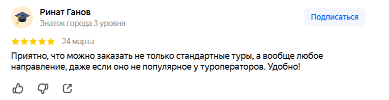 Эти примеры демонстрируют, что компания работает с нестандартными ситуациями, а не просто заполняет шаблонные анкеты. Комплексный сервис «все включено» Егор Бодров отметил: «Искал место, где можно сразу оформить и визу, и билеты, и жилье. Менеджеры предложили несколько вариантов отелей с учетом моих предпочтений по расположению и бюджету. В итоге сэкономил не только время, но и около 15% по сравнению с самостоятельным бронированием». Александр Манин добавил: «Мне организовали не просто поездку, а полноценный тур — с трансферами, экскурсиями и даже рекомендациями по ресторанам. При этом итоговая стоимость оказалась ниже, чем если бы я все бронировал отдельно». Персонализированный подход Особенно клиенты ценят умение подстраиваться под индивидуальные запросы. Никита Киркин рассказал: «Хотел отель в центре города, но без туристического шума. Менеджер подобрал отличный вариант — тихий бутик-отель в 5 минутах от основных достопримечательностей». Ринат Ганов подчеркнул: «Мне нужен был тур в нестандартное направление, куда большинство операторов даже не предлагают поездки. Здесь нашли подходящие варианты и помогли с оформлением». Поддержка на всех этапах Владик отметил: «Весь процесс занял больше времени, чем я ожидал, но сотрудники постоянно были на связи, оперативно отвечали на вопросы. Когда в документах обнаружилась ошибка, они помогли ее быстро исправить». Hou2ton написал: «Никогда раньше не пользовался такими услугами и сильно переживал. Менеджер подробно объяснил каждый этап, успокоил, и в итоге все прошло гладко». Все отзывы можно посмотреть как на Яндекс Картах, так и 2ГИС. Чтобы понять, насколько выгодно присоединяться к франшизе, можно рассмотреть кейс действующего партнера. — Расскажите, почему вы выбрали именно «Центр Путешествий»? «Главное преимущество — готовые решения. Компания предоставляет CRM-систему, обучение, маркетинговые материалы. То есть, как это работает во всех франшизах — не нужно изобретать велосипед: есть проверенные схемы работы с визами и турами». — Какие сложности были в начале? «Первое время клиентов было немного, но благодаря поддержке головного офиса удалось быстро выйти на стабильный доход. Например, они помогают с рекламой и проводят вебинары по продажам». — Что самое важное в этом бизнесе? «Доверие клиентов. Когда люди видят, что ты не просто продаешь тур, а реально помогаешь с визами и подбором отелей, они возвращаются и рекомендуют друзьям, от этого и идут положительные отзывы и репутация». Опыт клиентов и партнеров показывает, что «Центр Путешествий № 1» — это не просто продажа туров, а комплексный сервис. Для франчайзи ключевые плюсы — это готовая бизнес-модель, поддержка и возможность быстрого старта. Однако, как и в любом бизнесе, успех зависит от активной работы и умения выстраивать доверительные отношения с клиентами. Если искать франшизу с низким порогом входа и востребованными услугами, этот вариант заслуживает внимания. Но важно изучить все условия и пообщаться с действующими партнерами, чтобы принять взвешенное решение.