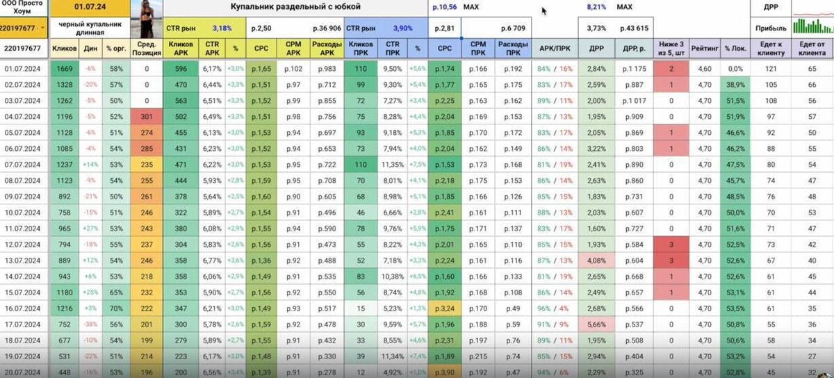 Всё это поможет вам сразу применить рекомендации и получить результат. Если коротко, это способ сделать так, чтобы ваш товар был заметен покупателям в поиске на Wildberries или Ozon. SEO для маркетплейсов — это не только про тексты, как на обычных сайтах, но и про правильное заполнение всех характеристик, название, подбор категории и работу с ключевыми словами. Ваша задача — оформить карточку так, чтобы она максимально совпадала с тем, что ищут покупатели. Чем это отличается от классического SEO для сайтов? Для сайтов SEO — это про тексты, структуру страниц, технические настройки и внешние ссылки. На маркетплейсах же всё крутится вокруг карточки товара: важно, чтобы она была полностью и правильно заполнена, а ключевые слова стояли там, где их ждёт алгоритм площадки. Здесь не нужно заморачиваться с кодом или настройками сайта — всё решают грамотное описание, характеристики и правильный выбор категории. Почему это критически важно для продаж? Если карточка не оптимизирована, товар просто не попадёт в результаты поиска — даже если он дешевле и лучше конкурентов. Алгоритмы маркетплейса показывают покупателям только те товары, которые максимально подходят под их поисковые запросы. Поэтому SEO на Wildberries — это не про «быть где-то», а про «быть там, где вас точно найдут и купят». Всё просто: если ваша карточка не появляется на первых страницах, её просто не увидят. А чтобы попасть в топ, важно понимать, как думают алгоритмы Wildberries и почему ключевые слова — это не просто формальность, а реальный инструмент для роста продаж. Алгоритмы Wildberries анализируют сотни факторов, чтобы решить, какие товары показать выше остальных. Что важно в первую очередь: Причем для каждого покупателя выдача будет разной: кто-то видит товары с быстрой доставкой, кто-то — с лучшими отзывами или ценой. Всё это динамично меняется в зависимости от региона, спроса и поведения покупателей. Почему ключевые слова решают всё Самый главный фильтр — это точное совпадение между поисковым запросом и содержимым карточки. Если человек ищет «купальник для бассейна», а у вас в описании только «купальник», ваш товар может просто не попасть в выдачу по нужному поисковому запросу. Поэтому важно не только подобрать базовые ключи, но и добавить синонимы, уточнения, разные формулировки — так вы охватите больше реальных запросов покупателей. Как это выглядит на практике? Для магазина женской одежды решили обновить карточки товаров — собрали ключевые слова, переписали заголовки и описание, добавили инфографику. Результат — за месяц количество переходов на карточки выросло на 60%, а выручка увеличилась на 30%. Когда речь заходит о продвижении товаров на Wildberries, важно понимать: SEO — это только часть большой системы. Алгоритмы площадки учитывают сразу несколько факторов, и только в комплексе они дают результат. Что влияет на позиции товара в поиске? SEO — это основа, на которой строится всё остальное. Если карточка плохо оптимизирована, даже платная реклама не даст нужного эффекта: товар будет показываться не тем, кто его ищет. Хорошая SEO-оптимизация даёт больше бесплатных показов и переходов, а значит — больше продаж и рост органического трафика. Кроме того, SEO работает на долгосрочную перспективу. В отличие от рекламы, которая даёт краткосрочный всплеск, оптимизированная карточка стабильно держится в 