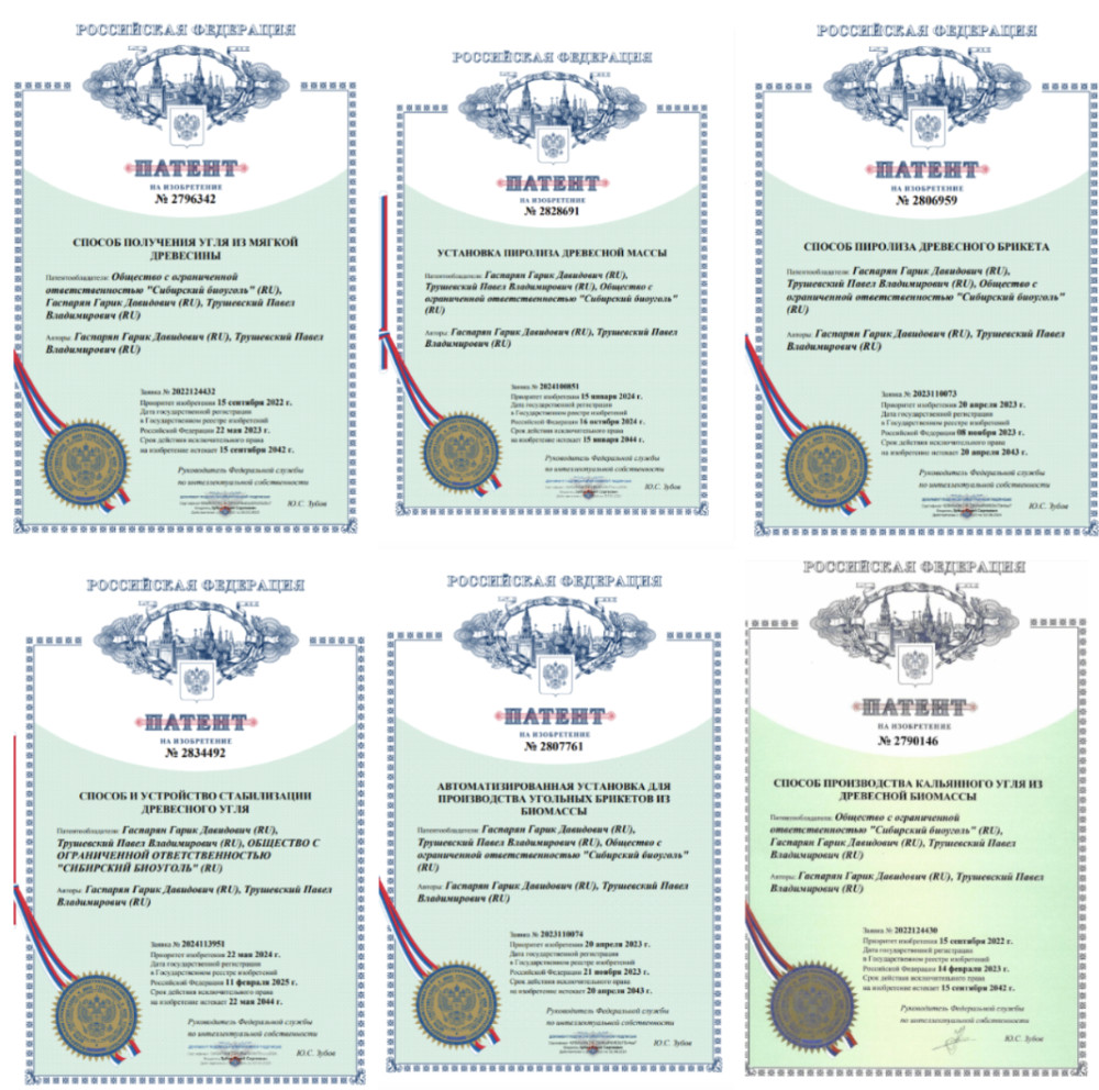 Доверитель — компания «Сибирский биоуголь» — пришел в ИИП с инновационными проектами в области экологического топлива. Необходимо было оформить патенты на технологии пиролиза, электронагрева и стабилизации древесного угля. В совокупности — 7 объектов: изобретения, полезные модели и ноу-хау.