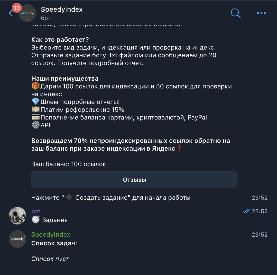 Но даже при соблюдении всех этих условий индексация часто задерживается. Именно здесь на помощь приходит SpeedyIndexBot.