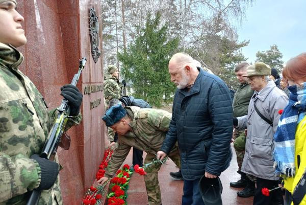 Памятные мероприятия начались в Парке имени 30-летия Победы, где собравшиеся возложили цветы к памятнику «Сыновьям Омской земли, выполнившим свой воинский долг перед Отечеством, посвящается».