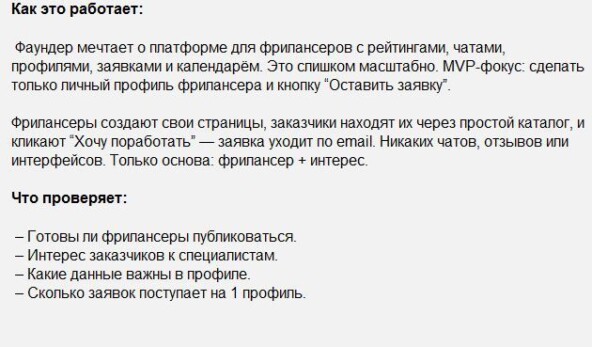 - Минимально — потому что вы тратите минимум ресурсов (времени, денег, сил), чтобы проверить свою идею.