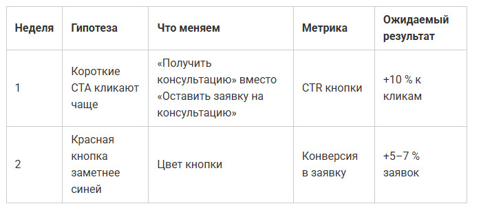 Ожидаемый результат от хорошего CTA — рост конверсии: больше кликов по кнопкам, заявок, продаж. То есть, человек не просто видит ваш контент, а делает следующий шаг — туда, куда вы его ведете.