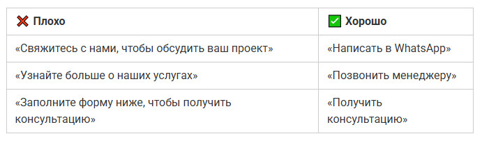 Лучше выбрать один основной CTA — например, «Получить бесплатную консультацию», — и один вспомогательный, менее яркий: «Посмотреть кейсы» или «Задать вопрос в Telegram».
