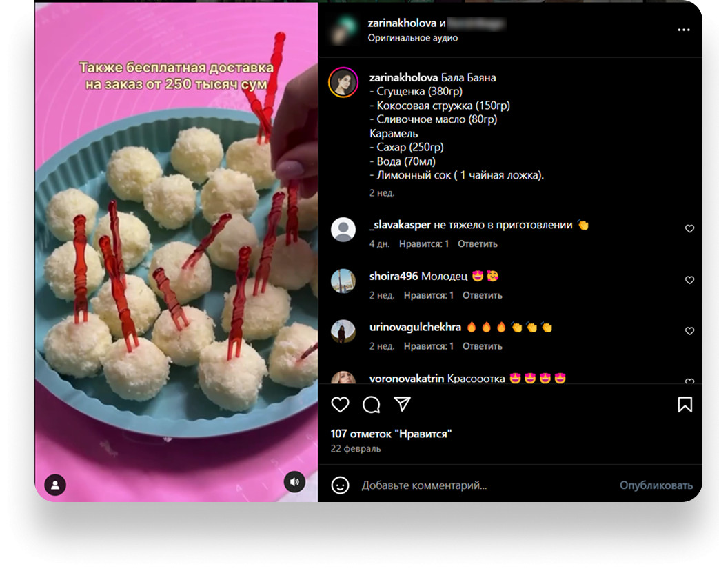С осени 2024-го мы перезапустились в другом формате — попробовали бартер. Мы предлагали блогерам промокоды на бесплатные заказы ($23 в эквиваленте) в обмен на интеграции. Честно — сначала думали, что никто не согласится.