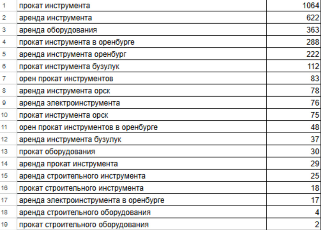 По данным Яндекса, в Оренбургской области по теме аренды оборудования — около 3 200 показов в месяц. Запросы в основном коммерческие. Это значит, что люди ищут не советы, а конкретную услугу — и принимать решение готовы сразу.