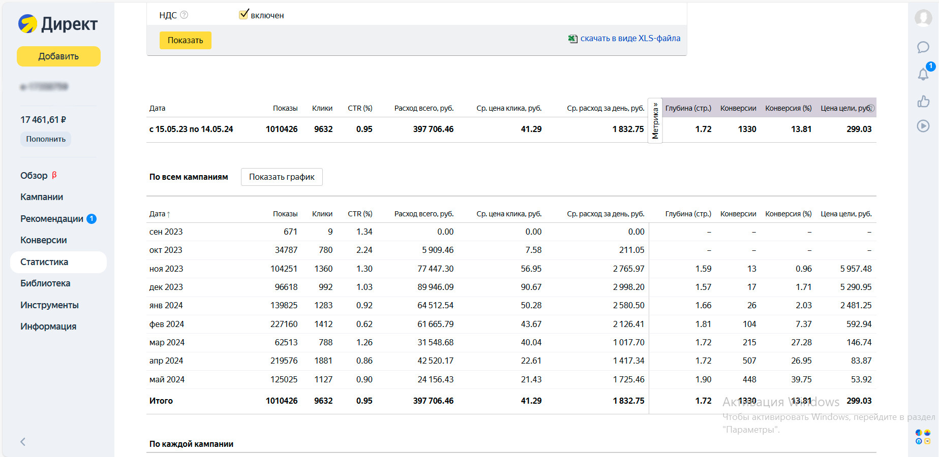 Собрали семантику, согласовали её с клиентом, и запустили в работу сразу несколько рекламных кампаний: