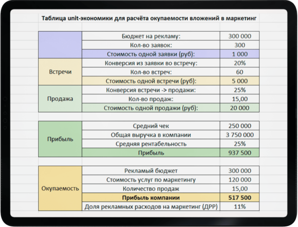 Рассчитали unit-экономику мебельного салона в части затрат и выручки от маркетинга