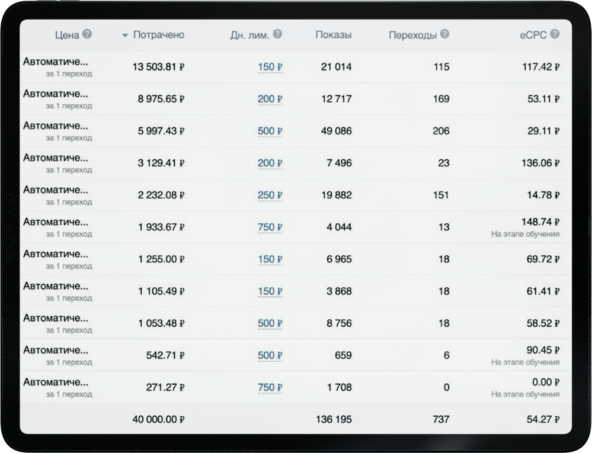 - Подключили 2 основных канала трафика:- Яндекс.Директ;- ВКонтакте;