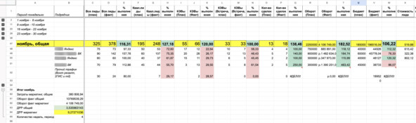 Расчёт позволил определить прогнозные значения по затратам на маркетинг и планируемой выручке. Собственника мебельного салона полностью устроили эти цифры, и мы приступили к реализации плана. Забегая вперёд — данный прогноз полностью оправдался. Чтобы наладить стабильный поток лидов из Яндекс.Директа на кухни, мы подключили одновременно 2-х проверенных исполнителей. Это хороший способ снизить риски — запустить трафик сразу с 2-х рекламных кабинетов. В этом случае, исполнители конкурируют друг с другом, и каждый понимает, что должен сделать максимальный результат. Это позволяет анализировать ситуацию сразу с двух сторон, избежать однобокого взгляда и слепых зон, и принимать более точные решения. И самое главное — реклама с 2-х кабинетов позволяет получать в 1,5-2 раза больше лидов, чем с одного кабинета, при тех же расходах на рекламу. Ниже мы приводим скриншоты рекламных кабинетов одного из исполнителей: Как видно по кабинетам, реклама продолжает идти по сей день. Ближе к концу этой статьи мы покажем вам таблицу управленческого учёта, в которой вы увидите все показатели по каждому этапу воронки. Цель упаковки: привлечь нужную нам аудиторию клиентов, и вызвать желание оставить у нас заявку. Для этого мы разработали 2 коротких лендинга, и прописали в них все ключевые преимущества нашего мебельного салона. Вот пример главной страницы одного из них: Кроме этого, мы разработали красивый каталог мебели на 106 страниц, чтобы можно было отправлять его, в обмен на контактные данные клиента на сайте. Каждый исполнитель лил трафик из Яндекс.Директа на свой лендинг. С этих лендингов, средняя конверсия из лида в замер составила 27%. У каждого исполнителя была своя связка — у одного через лид-формы, у второго — через чат-бот в личных сообщениях. Логика запуска одновременно двух исполнителей та же, что и в директе — тестируется вдвое больше гипотез, взгляд на аналитику тоже с двух сторон, и поток лидов получается более стабильным. Вот скриншот рекламного кабинета ВКонтакте одного из исполнителей: Ниже мы покажем скриншот таблицы управленческого учёта, которая является главным документом взаимодействия владельца салона с нашим директором по маркетингу. Эта таблица отражает:- статистику по каждому исполнителю;- показатели на каждом этапе воронки: лиды, встречи, сделки;- выручка и затраты по каждому исполнителю; Вот скриншот таблицы за один из месяцев: Сводные показатели за отчётный месяц: 1. Выручка: 4 106 749 р.2. Затраты на маркетинг: 380 806 р.(включая рекламный бюджет и наши услуги)3. Количество договоров: 184. Доля рекламных расходов (ДРР): 9,27% Специально для владельцев бизнеса с оборотом от 2 млн.р./месяц, у нас есть предложение: бесплатная онлайн-экскурсия в наш отдел маркетинга. Вот что мы показываем на экскурсии:- Орг.структура отдела маркетинга;- Инструменты директора по маркетингу: таблицы, регламенты, дашборды;- Структура найма и контроля крутых специалистов;- Самое главное: реальные цифры по затратам и выручке. Если у вас есть запрос на построение отдела маркетинга, который обеспечит вас бесперебойным потоком лидов и увеличит вашу выручку, пишите слово «Экскурсия» по контактам ниже: Telegram: @mouse_1618