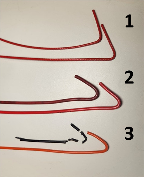условиях. Наблюдается обуглившийся и потрескавшийся пластикат, неподходящий для