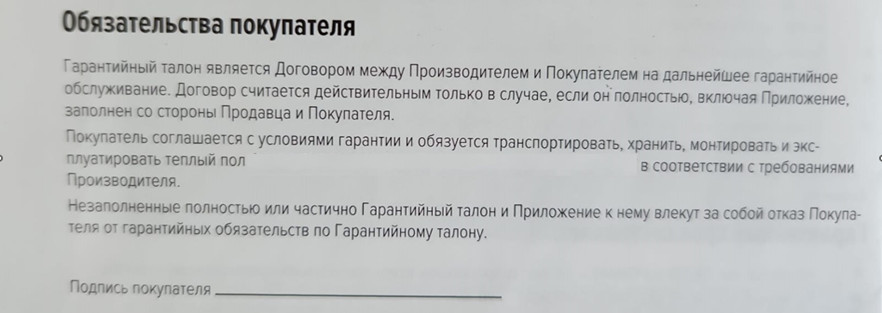 ресурсов на подписание контрактов с сервисными центрами по всей России. Зато сейчас сложно найти теплый пол с гарантией меньше, чем 15 лет, но чем