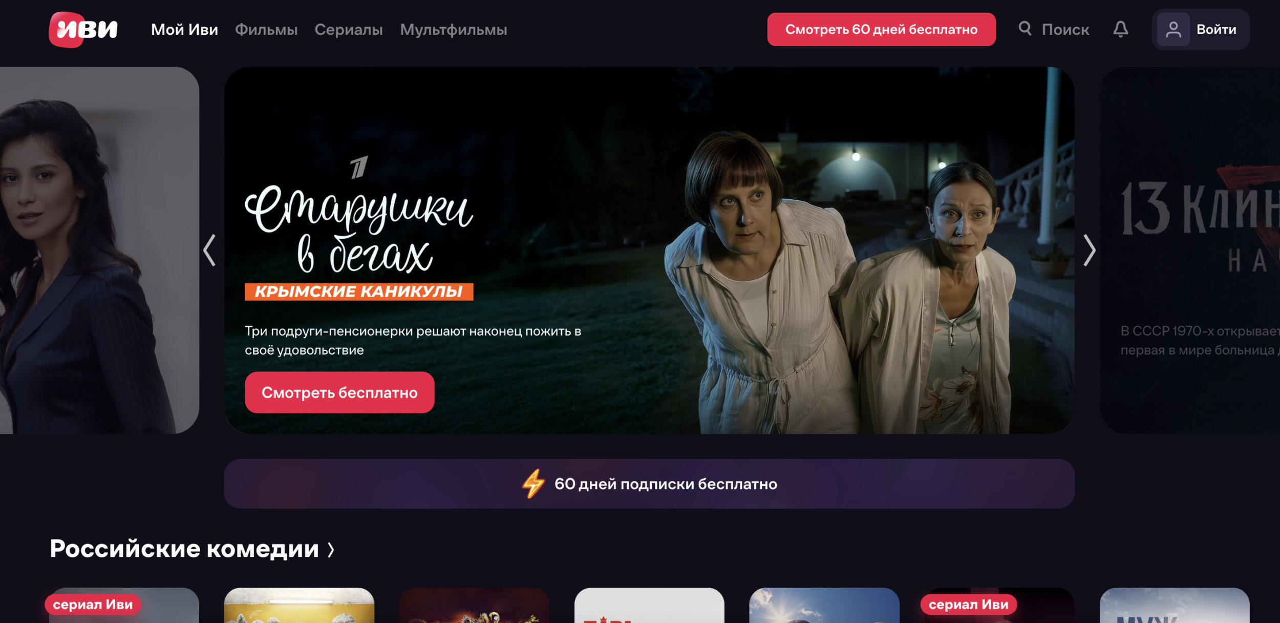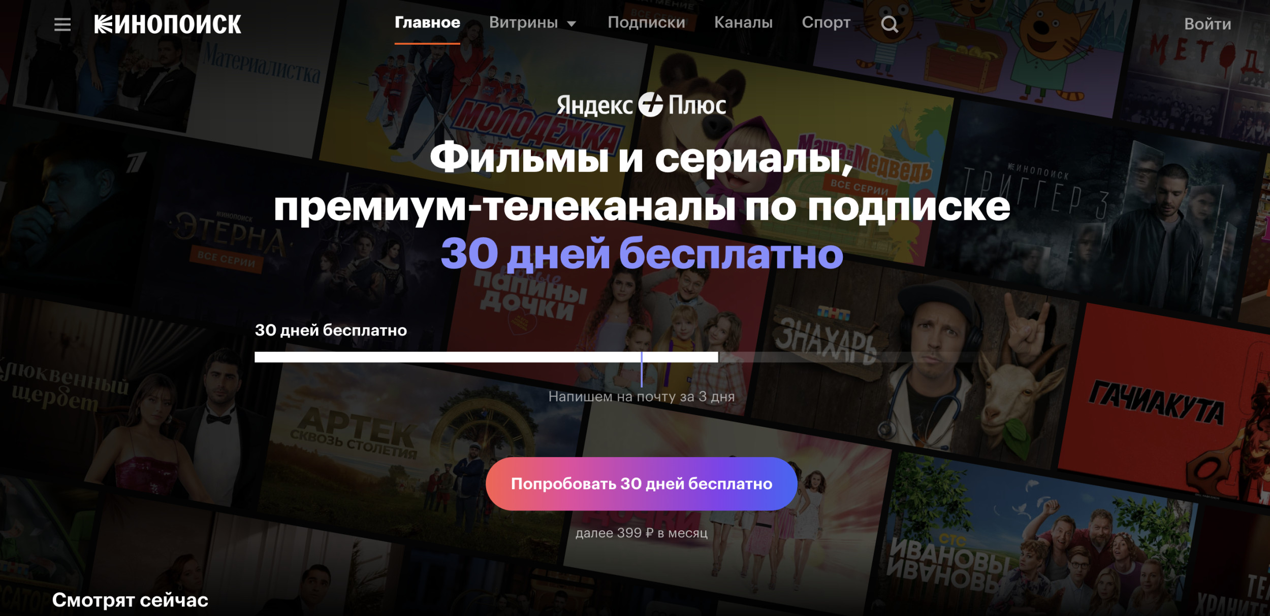 Контент: российские и зарубежные фильмы, сериалы, анимация, эксклюзивы, включая оригиналы («Король и Шут», «Слово пацана»). Интеграция с Яндекс.Музыкой и Алисой.